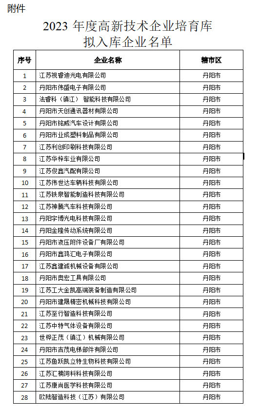2023 年度高新技術(shù)企業(yè)培育庫擬入庫